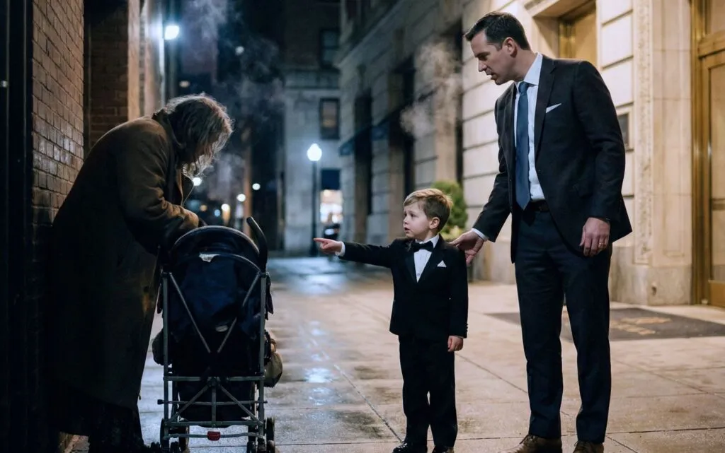 Leo Blake, small for his age and dressed in a miniature tuxedo, gripped his father’s hand with white-knuckled intensity. Behind them, the world was champagne flutes and crystal chandeliers; ahead, it was just the dark, paved reality of the street.