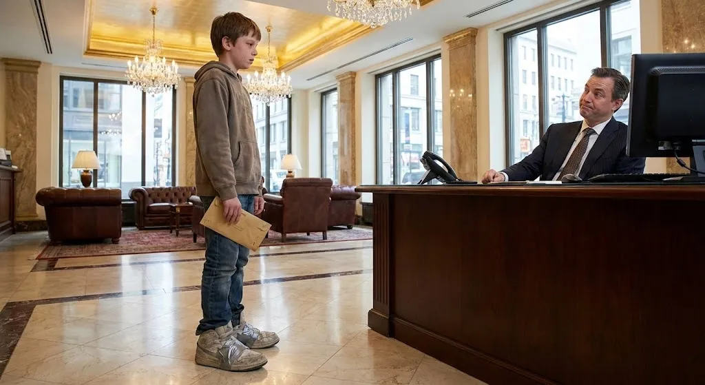 Marcus walked forward on legs that felt like they might give out at any moment. He could feel every eye in the lobby watching him, judging him, finding him lacking. His two big sneakers seemed impossibly loud against the marble. The envelope in his hand felt like it weighed a thousand pounds.
